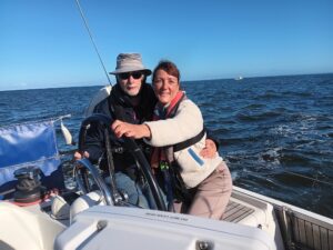 Jill is the owner of popular cafe/restaurants The Lock at Royal Quays and The Veiw overlooking Longsands at Tynemouth. A very busy lady is Jill but we finally managed to get her away for a sail. She very much enjoyed it too ‘An amazing day. Loved every minute’ was her response. Both places offer great experiences The Veiw .