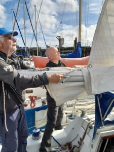 Shown here explaining the reefing system to Carl and crew onboard his boat Elevator in Blyth. It’s always good to see a different boat and help the owner, especially with the biggest worry – berthing in the marina.
