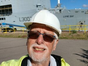 One of the more unusual tasks was to board a warship, Lyme Bay, which was in dry dock in the Tyne, and deliver a VHF Assessment to 6 crew in a wardroom, high up (lots of stairs and no windows)