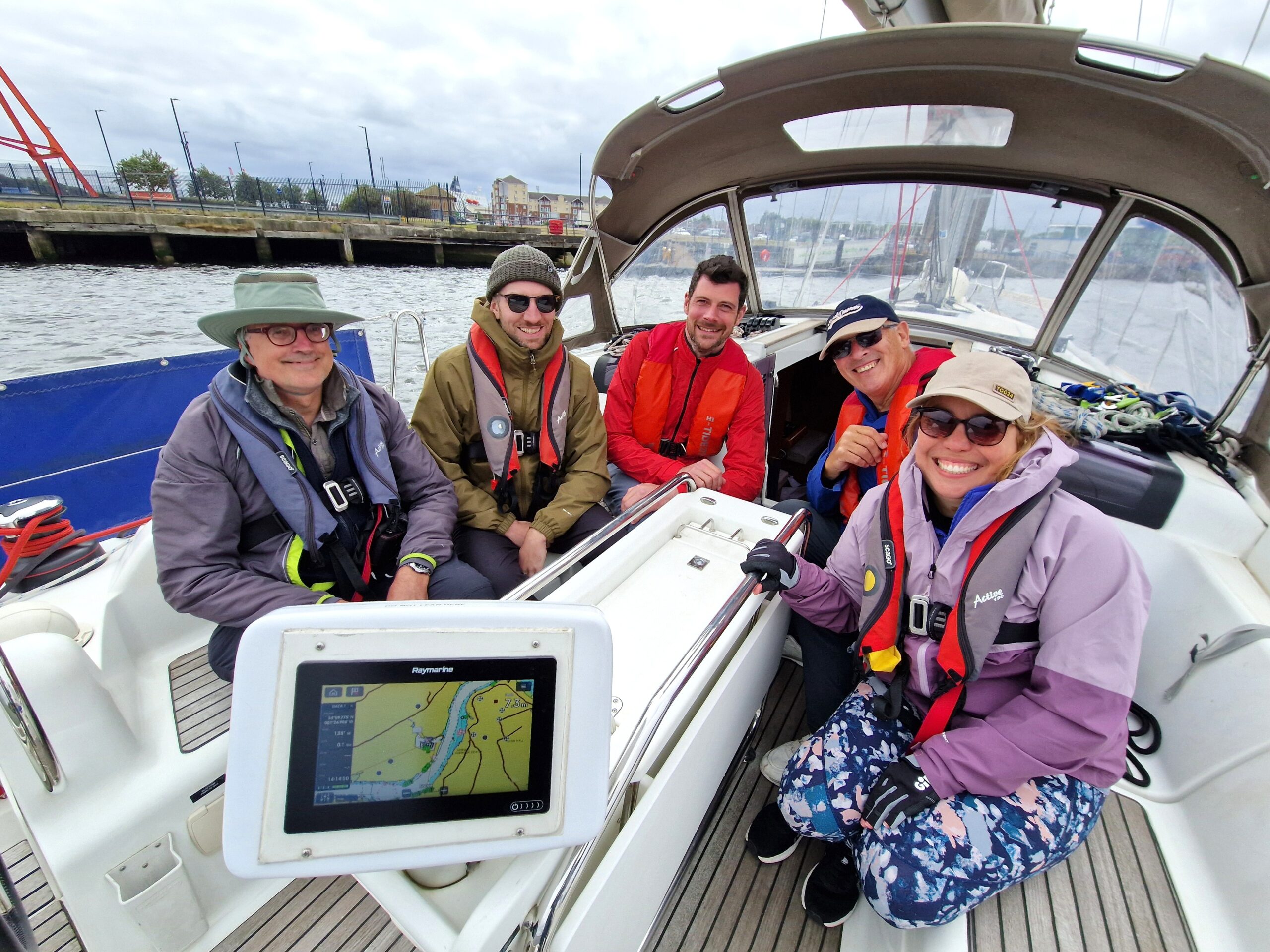 Enjoying the Taster Day we see Kevin, Scott, Robin, Peter & Olena. Scott and Olena have already asked for more Practical/Theory in their journey towards a safe and capable life at sea.